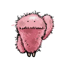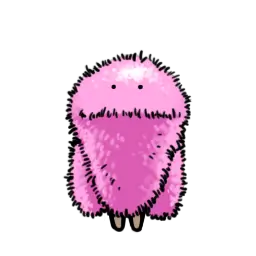 ふさふさとした桃色の体毛が特徴。 この体毛のおかげで、氷河期の過酷な 環境で生き残ることができたらしい。 | |