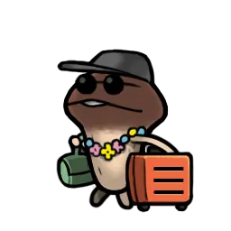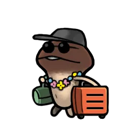 なめこの着せ替え式スーツケースを 見せびらかす特別な種。 ぼくとお揃いの欲しくない??? |