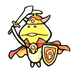 伝説の装備の封印を解き、 伝説の勇者になったなめこ。 封印を解いた際に頭に生えた 謎物質に思考を支配されている。 |