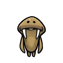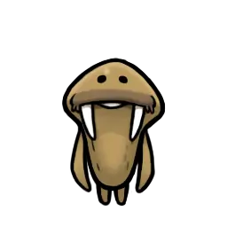 防寒のための分厚い皮膚や脂肪は 攻撃を阻む鎧の役割も持つ。 鋭く大きな牙と併せて、実は 攻守にスキのないなめこである。 |